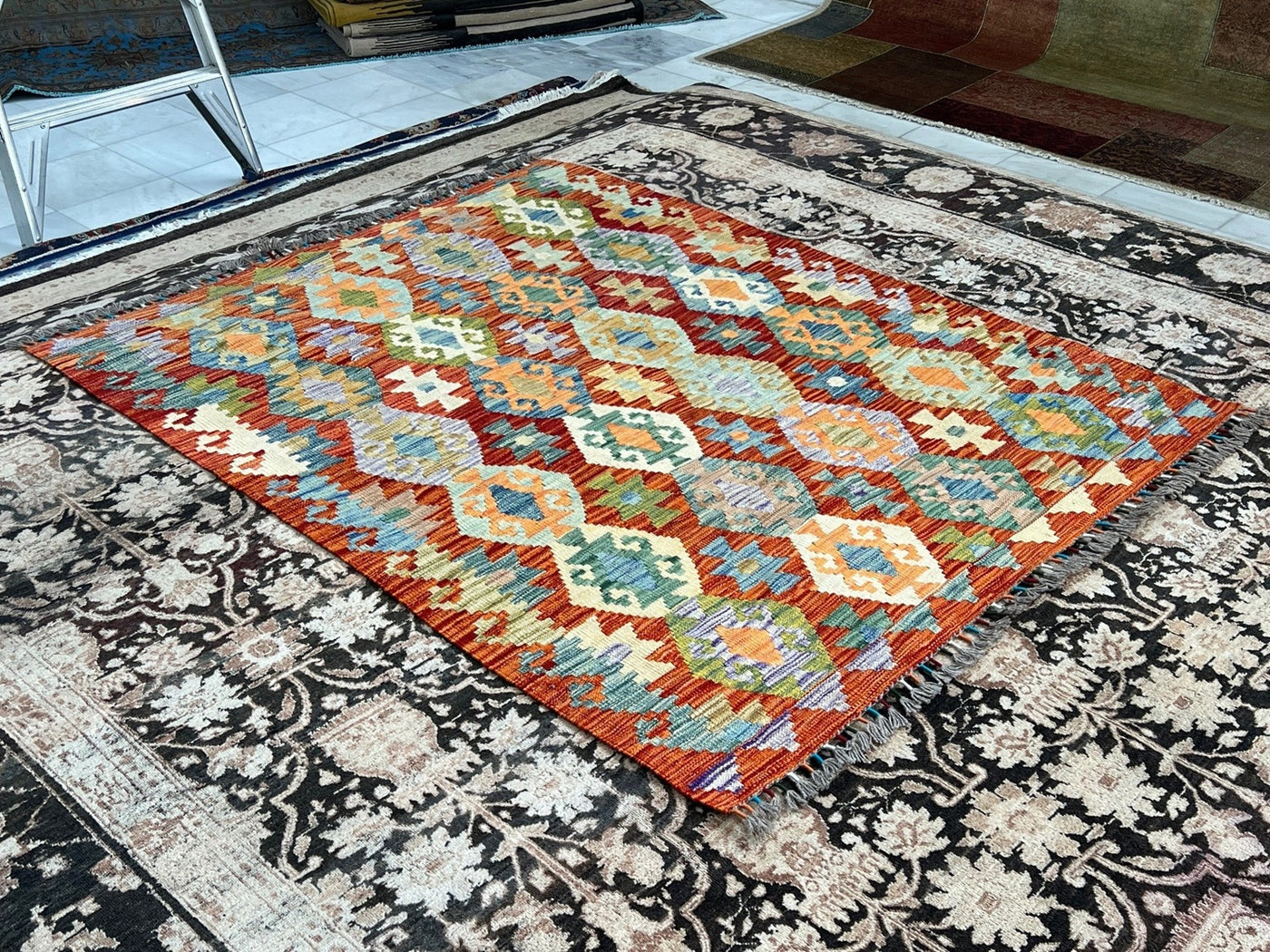 {"id":8295634337892,"title":"KILIM CHOBI RUG - KILSN10 | SIZE: 165CM X 128CM","handle":"afghan-handwoven-kilim-rug-melbourne-kilsn10","description":"\u003cp\u003e\u003cstrong data-mce-fragment=\"1\"\u003eKILIM CHOBI HANDMADE RUGS\u003c\/strong\u003e\u003cbr data-mce-fragment=\"1\"\u003e\u003cbr data-mce-fragment=\"1\"\u003e\u003cspan data-mce-fragment=\"1\"\u003eOur Kilims are collection of original Persian, Afghani and Turkish flat weave master pieces, mostly colourful in Tribal and Traditional designs.\u003c\/span\u003e\u003cbr data-mce-fragment=\"1\"\u003e\u003cbr data-mce-fragment=\"1\"\u003e\u003cstrong data-mce-fragment=\"1\"\u003eRug Number: KILSN10\u003c\/strong\u003e\u003cbr data-mce-fragment=\"1\"\u003e\u003cbr data-mce-fragment=\"1\"\u003e\u003cstrong data-mce-fragment=\"1\"\u003eConstruction: Handwoven\u003c\/strong\u003e\u003cbr data-mce-fragment=\"1\"\u003e\u003cbr data-mce-fragment=\"1\"\u003e\u003cstrong data-mce-fragment=\"1\"\u003eMaterial: Vegtable Dyed Wool\u003c\/strong\u003e\u003cbr data-mce-fragment=\"1\"\u003e\u003cbr data-mce-fragment=\"1\"\u003e\u003cstrong data-mce-fragment=\"1\"\u003eOrigin: Afghanistan\u003c\/strong\u003e\u003cbr data-mce-fragment=\"1\"\u003e\u003cbr data-mce-fragment=\"1\"\u003e\u003cspan data-mce-fragment=\"1\"\u003e* * * * * * * * * * * * * * * * * * * * * * * * * * * * * * * * * * * * *\u003c\/span\u003e\u003cbr data-mce-fragment=\"1\"\u003e\u003cbr data-mce-fragment=\"1\"\u003e\u003cstrong data-mce-fragment=\"1\"\u003eREASON FOR COLOUR VARIATION IN IMAGES\u003c\/strong\u003e\u003cbr data-mce-fragment=\"1\"\u003e\u003cbr data-mce-fragment=\"1\"\u003e\u003cspan data-mce-fragment=\"1\"\u003eAll hand knotted rugs have a smooth pile side and a rough pile side. The direction of a rug’s pile results in it’s light and dark shades.\u003c\/span\u003e\u003cbr data-mce-fragment=\"1\"\u003e\u003cbr data-mce-fragment=\"1\"\u003e\u003cspan data-mce-fragment=\"1\"\u003eThe smooth pile side reflects the light, giving the rug a lighter tone whilst the rough pile side absorb the light giving the rug a dark or deeper tone.\u003c\/span\u003e\u003cbr data-mce-fragment=\"1\"\u003e\u003cbr data-mce-fragment=\"1\"\u003e\u003cspan data-mce-fragment=\"1\"\u003eThe colours of a rug will appear either lighter or darker depending on which side the viewer is standing or taking images.\u003c\/span\u003e\u003c\/p\u003e","published_at":"2025-12-04T12:21:22+11:00","created_at":"2025-12-04T12:21:22+11:00","vendor":"Silk Road Handmade Rugs","type":"","tags":[],"price":39500,"price_min":39500,"price_max":39500,"available":true,"price_varies":false,"compare_at_price":79500,"compare_at_price_min":79500,"compare_at_price_max":79500,"compare_at_price_varies":false,"variants":[{"id":47466400415844,"title":"Default Title","option1":"Default Title","option2":null,"option3":null,"sku":"KILSN10","requires_shipping":true,"taxable":false,"featured_image":null,"available":true,"name":"KILIM CHOBI RUG - KILSN10 | SIZE: 165CM X 128CM","public_title":null,"options":["Default Title"],"price":39500,"weight":0,"compare_at_price":79500,"inventory_management":"shopify","barcode":null,"requires_selling_plan":false,"selling_plan_allocations":[]}],"images":["\/\/www.silkroadrugs.com.au\/cdn\/shop\/files\/Image10_7cb9ac66-bbd9-4763-88dd-05058c0b4b36.jpg?v=1764811387","\/\/www.silkroadrugs.com.au\/cdn\/shop\/files\/2_234a5458-223b-4902-b2bd-f8327346a7ab.jpg?v=1764811387","\/\/www.silkroadrugs.com.au\/cdn\/shop\/files\/3_1f56a946-d7cf-4e8b-915c-cf98f51c7e84.jpg?v=1764811387","\/\/www.silkroadrugs.com.au\/cdn\/shop\/files\/4_8710a7b3-49b2-42f7-94b6-e3c55266fc93.jpg?v=1764811387","\/\/www.silkroadrugs.com.au\/cdn\/shop\/files\/8_1ca454e2-b87d-4dde-97f4-87f86e75f201.jpg?v=1764811387","\/\/www.silkroadrugs.com.au\/cdn\/shop\/files\/5_ded0b9e2-773b-496d-9b18-c8340fdcdb49.jpg?v=1764811387","\/\/www.silkroadrugs.com.au\/cdn\/shop\/files\/6_db406859-e030-4418-9132-d351b8ed83f5.jpg?v=1764811387","\/\/www.silkroadrugs.com.au\/cdn\/shop\/files\/7_8fd2c19e-09ee-4fcb-b539-c0dc05bc40d6.jpg?v=1764811387","\/\/www.silkroadrugs.com.au\/cdn\/shop\/files\/9_d3069e53-aa86-4cb5-b5ec-3239814925de.jpg?v=1764811387","\/\/www.silkroadrugs.com.au\/cdn\/shop\/files\/10_c80c335f-0f59-492d-9657-c0184bea3b62.jpg?v=1764811387"],"featured_image":"\/\/www.silkroadrugs.com.au\/cdn\/shop\/files\/Image10_7cb9ac66-bbd9-4763-88dd-05058c0b4b36.jpg?v=1764811387","options":["Title"],"media":[{"alt":null,"id":30803832012900,"position":1,"preview_image":{"aspect_ratio":0.79,"height":1370,"width":1082,"src":"\/\/www.silkroadrugs.com.au\/cdn\/shop\/files\/Image10_7cb9ac66-bbd9-4763-88dd-05058c0b4b36.jpg?v=1764811387"},"aspect_ratio":0.79,"height":1370,"media_type":"image","src":"\/\/www.silkroadrugs.com.au\/cdn\/shop\/files\/Image10_7cb9ac66-bbd9-4763-88dd-05058c0b4b36.jpg?v=1764811387","width":1082},{"alt":null,"id":30803831685220,"position":2,"preview_image":{"aspect_ratio":1.333,"height":1125,"width":1500,"src":"\/\/www.silkroadrugs.com.au\/cdn\/shop\/files\/2_234a5458-223b-4902-b2bd-f8327346a7ab.jpg?v=1764811387"},"aspect_ratio":1.333,"height":1125,"media_type":"image","src":"\/\/www.silkroadrugs.com.au\/cdn\/shop\/files\/2_234a5458-223b-4902-b2bd-f8327346a7ab.jpg?v=1764811387","width":1500},{"alt":null,"id":30803831717988,"position":3,"preview_image":{"aspect_ratio":1.333,"height":1125,"width":1500,"src":"\/\/www.silkroadrugs.com.au\/cdn\/shop\/files\/3_1f56a946-d7cf-4e8b-915c-cf98f51c7e84.jpg?v=1764811387"},"aspect_ratio":1.333,"height":1125,"media_type":"image","src":"\/\/www.silkroadrugs.com.au\/cdn\/shop\/files\/3_1f56a946-d7cf-4e8b-915c-cf98f51c7e84.jpg?v=1764811387","width":1500},{"alt":null,"id":30803831750756,"position":4,"preview_image":{"aspect_ratio":1.333,"height":1125,"width":1500,"src":"\/\/www.silkroadrugs.com.au\/cdn\/shop\/files\/4_8710a7b3-49b2-42f7-94b6-e3c55266fc93.jpg?v=1764811387"},"aspect_ratio":1.333,"height":1125,"media_type":"image","src":"\/\/www.silkroadrugs.com.au\/cdn\/shop\/files\/4_8710a7b3-49b2-42f7-94b