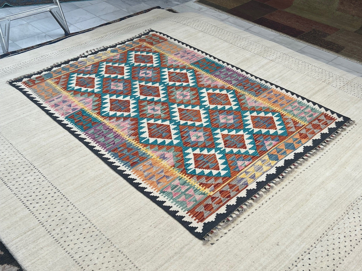 {"id":8297720774756,"title":"KILIM CHOBI RUG - KILSN14 | SIZE: 179CM X 130CM","handle":"afghan-handwoven-kilim-rug-melbourne-kilsn14","description":"\u003cp\u003e\u003cstrong data-mce-fragment=\"1\"\u003eKILIM CHOBI HANDMADE RUGS\u003c\/strong\u003e\u003cbr data-mce-fragment=\"1\"\u003e\u003cbr data-mce-fragment=\"1\"\u003e\u003cspan data-mce-fragment=\"1\"\u003eOur Kilims are collection of original Persian, Afghani and Turkish flat weave master pieces, mostly colourful in Tribal and Traditional designs.\u003c\/span\u003e\u003cbr data-mce-fragment=\"1\"\u003e\u003cbr data-mce-fragment=\"1\"\u003e\u003cstrong data-mce-fragment=\"1\"\u003eRug Number: KILSN14\u003c\/strong\u003e\u003cbr data-mce-fragment=\"1\"\u003e\u003cbr data-mce-fragment=\"1\"\u003e\u003cstrong data-mce-fragment=\"1\"\u003eConstruction: Handwoven\u003c\/strong\u003e\u003cbr data-mce-fragment=\"1\"\u003e\u003cbr data-mce-fragment=\"1\"\u003e\u003cstrong data-mce-fragment=\"1\"\u003eMaterial: Vegtable Dyed Wool\u003c\/strong\u003e\u003cbr data-mce-fragment=\"1\"\u003e\u003cbr data-mce-fragment=\"1\"\u003e\u003cstrong data-mce-fragment=\"1\"\u003eOrigin: Afghanistan\u003c\/strong\u003e\u003cbr data-mce-fragment=\"1\"\u003e\u003cbr data-mce-fragment=\"1\"\u003e\u003cspan data-mce-fragment=\"1\"\u003e* * * * * * * * * * * * * * * * * * * * * * * * * * * * * * * * * * * * *\u003c\/span\u003e\u003cbr data-mce-fragment=\"1\"\u003e\u003cbr data-mce-fragment=\"1\"\u003e\u003cstrong data-mce-fragment=\"1\"\u003eREASON FOR COLOUR VARIATION IN IMAGES\u003c\/strong\u003e\u003cbr data-mce-fragment=\"1\"\u003e\u003cbr data-mce-fragment=\"1\"\u003e\u003cspan data-mce-fragment=\"1\"\u003eAll hand knotted rugs have a smooth pile side and a rough pile side. The direction of a rug’s pile results in it’s light and dark shades.\u003c\/span\u003e\u003cbr data-mce-fragment=\"1\"\u003e\u003cbr data-mce-fragment=\"1\"\u003e\u003cspan data-mce-fragment=\"1\"\u003eThe smooth pile side reflects the light, giving the rug a lighter tone whilst the rough pile side absorb the light giving the rug a dark or deeper tone.\u003c\/span\u003e\u003cbr data-mce-fragment=\"1\"\u003e\u003cbr data-mce-fragment=\"1\"\u003e\u003cspan data-mce-fragment=\"1\"\u003eThe colours of a rug will appear either lighter or darker depending on which side the viewer is standing or taking images.\u003c\/span\u003e\u003c\/p\u003e","published_at":"2025-12-06T14:20:18+11:00","created_at":"2025-12-06T14:20:18+11:00","vendor":"Silk Road Handmade Rugs","type":"","tags":[],"price":39500,"price_min":39500,"price_max":39500,"available":true,"price_varies":false,"compare_at_price":79500,"compare_at_price_min":79500,"compare_at_price_max":79500,"compare_at_price_varies":false,"variants":[{"id":47481764544612,"title":"Default Title","option1":"Default Title","option2":null,"option3":null,"sku":"KILSN14","requires_shipping":true,"taxable":false,"featured_image":null,"available":true,"name":"KILIM CHOBI RUG - KILSN14 | SIZE: 179CM X 130CM","public_title":null,"options":["Default Title"],"price":39500,"weight":0,"compare_at_price":79500,"inventory_management":"shopify","barcode":null,"requires_selling_plan":false,"selling_plan_allocations":[]}],"images":["\/\/www.silkroadrugs.com.au\/cdn\/shop\/files\/Image10_3ed79953-126e-4bcf-bb5b-0cd2a4f93b0c.jpg?v=1764991298","\/\/www.silkroadrugs.com.au\/cdn\/shop\/files\/2_8e7f30f0-b369-4705-babb-5619a2d794fa.jpg?v=1764991298","\/\/www.silkroadrugs.com.au\/cdn\/shop\/files\/3_8e9140f5-040e-40ab-99cb-6c05fe812434.jpg?v=1764991298","\/\/www.silkroadrugs.com.au\/cdn\/shop\/files\/4_e3fbdeb4-b9ae-436a-a8a1-b970c92355a7.jpg?v=1764991298","\/\/www.silkroadrugs.com.au\/cdn\/shop\/files\/5_36f3e7a2-39ab-4723-89e5-69fbe8ed640f.jpg?v=1764991298","\/\/www.silkroadrugs.com.au\/cdn\/shop\/files\/9_bf3ea0fd-68e2-4d53-a4b1-4acaf0420d68.jpg?v=1764991298","\/\/www.silkroadrugs.com.au\/cdn\/shop\/files\/6_2491967d-bc3f-4acb-9d21-ad43c5d15f14.jpg?v=1764991298","\/\/www.silkroadrugs.com.au\/cdn\/shop\/files\/7_1bfbee48-40bc-41d9-a6d3-528b1444789f.jpg?v=1764991298","\/\/www.silkroadrugs.com.au\/cdn\/shop\/files\/8_d3a5e5b9-ec43-4c02-b530-0193bd5441c5.jpg?v=1764991298","\/\/www.silkroadrugs.com.au\/cdn\/shop\/files\/10_c273c5a8-4dad-446f-a188-dd790b3042b9.jpg?v=1764991298","\/\/www.silkroadrugs.com.au\/cdn\/shop\/files\/11_7ea8ff35-9855-4498-8444-82fd7717e377.jpg?v=1764991298"],"featured_image":"\/\/www.silkroadrugs.com.au\/cdn\/shop\/files\/Image10_3ed79953-126e-4bcf-bb5b-0cd2a4f93b0c.jpg?v=1764991298","options":["Title"],"media":[{"alt":null,"id":30821001363556,"position":1,"preview_image":{"aspect_ratio":0.753,"height":1382,"width":1040,"src":"\/\/www.silkroadrugs.com.au\/cdn\/shop\/files\/Image10_3ed79953-126e-4bcf-bb5b-0cd2a4f93b0c.jpg?v=1764991298"},"aspect_ratio":0.753,"height":1382,"media_type":"image","src":"\/\/www.silkroadrugs.com.au\/cdn\/shop\/files\/Image10_3ed79953-126e-4bcf-bb5b-0cd2a4f93b0c.jpg?v=1764991298","width":1040},{"alt":null,"id":30821000347748,"position":2,"preview_image":{"aspect_ratio":1.333,"height":1125,"width":1500,"src":"\/\/www.silkroadrugs.com.au\/cdn\/shop\/files\/2_8e7f30f0-b369-4705-babb-5619a2d794fa.jpg?v=1764991298"},"aspect_ratio":1.333,"height":1125,"media_type":"image","src":"\/\/www.silkroadrugs.com.au\/cdn\/shop\/files\/2_8e7f30f0-b369-4705-babb-5619a2d794fa.jpg?v=1764991298","width":1500},{"alt":null,"id":30821000380516,"position":3,"preview_image":{"aspect_ratio":1.333,"height":1125,"width":1500,"src":"\/\/www.silkroadrugs.com.au\/cdn\/shop\/files\/3_8e9140f5-040e-40ab-99cb-6c05fe812434.jpg?v=1764991298"},"aspect_ratio":1.333,"height":1125,"media_type":"image","src":"\/\/www.silkroadrugs.com.au\/cdn\/shop\/files\/3_8e9140f5-040e-40ab-99cb-6c05fe812434.jpg?v=1764991298","width":1500},{"alt":null,"id":30821000413284,"position":4,"preview_image":{"aspect_ratio":1.333,"height":1125,"width":1500,"src":"\/\/www.silkroadrugs.com.au\/cdn\/shop\/files\/4_e3fbdeb4-b9ae-436a-a8a1-b970c92355a7.jpg?v=1764991298"},"aspect_ratio":1.333,"heig