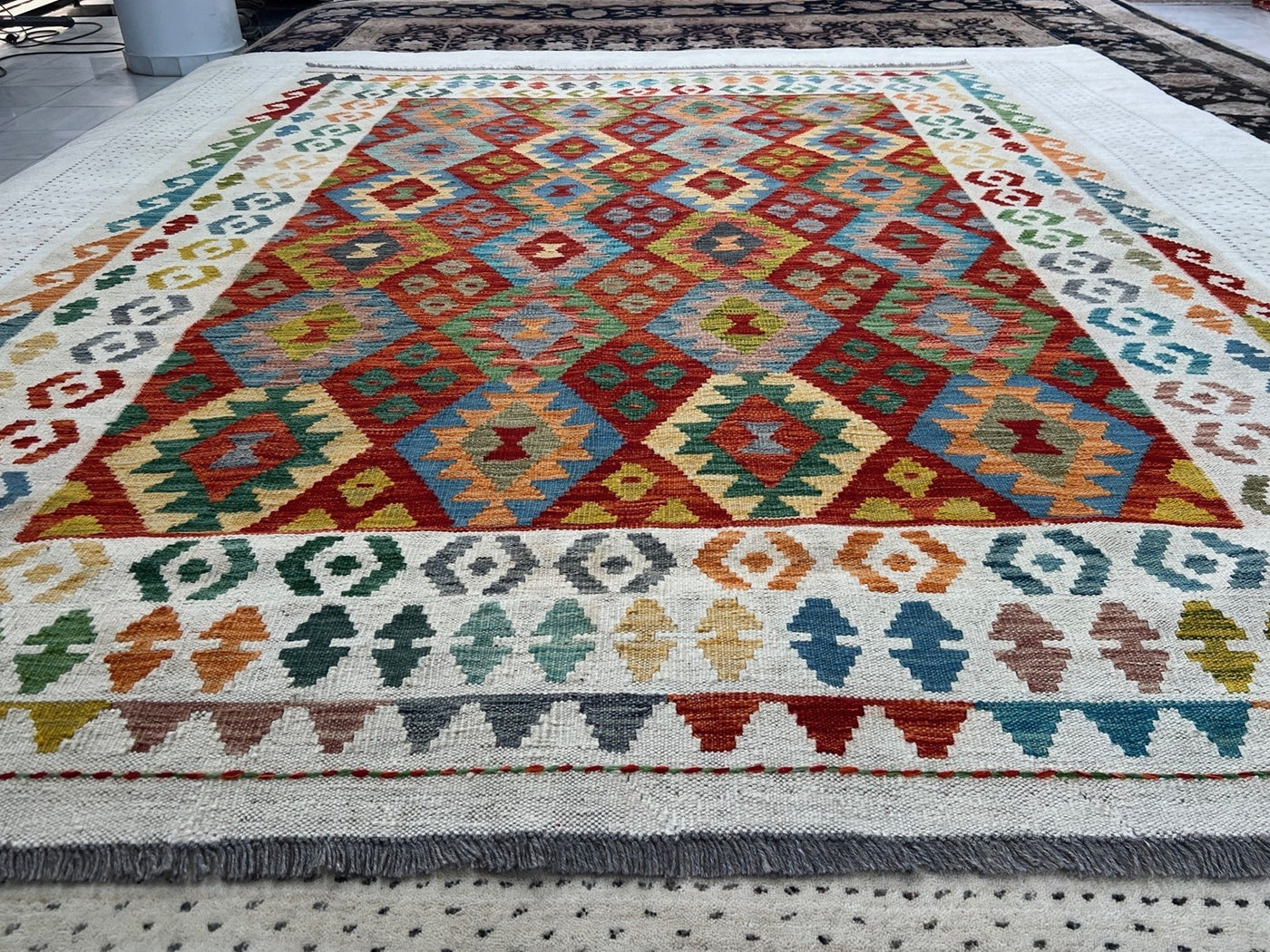 {"id":8304640000100,"title":"KILIM CHOBI RUG - KILSN38 | SIZE: 243CM X 177CM","handle":"afghan-handwoven-kilim-rug-melbourne-kilsn38","description":"\u003cp\u003e\u003cstrong data-mce-fragment=\"1\"\u003eKILIM CHOBI HANDMADE RUGS\u003c\/strong\u003e\u003cbr data-mce-fragment=\"1\"\u003e\u003cbr data-mce-fragment=\"1\"\u003e\u003cspan data-mce-fragment=\"1\"\u003eOur Kilims are collection of original Persian, Afghani and Turkish flat weave master pieces, mostly colourful in Tribal and Traditional designs.\u003c\/span\u003e\u003cbr data-mce-fragment=\"1\"\u003e\u003cbr data-mce-fragment=\"1\"\u003e\u003cstrong data-mce-fragment=\"1\"\u003eRug Number: KILSN38\u003c\/strong\u003e\u003cbr data-mce-fragment=\"1\"\u003e\u003cbr data-mce-fragment=\"1\"\u003e\u003cstrong data-mce-fragment=\"1\"\u003eConstruction: Handwoven\u003c\/strong\u003e\u003cbr data-mce-fragment=\"1\"\u003e\u003cbr data-mce-fragment=\"1\"\u003e\u003cstrong data-mce-fragment=\"1\"\u003eMaterial: Vegtable Dyed Wool\u003c\/strong\u003e\u003cbr data-mce-fragment=\"1\"\u003e\u003cbr data-mce-fragment=\"1\"\u003e\u003cstrong data-mce-fragment=\"1\"\u003eOrigin: Afghanistan\u003c\/strong\u003e\u003cbr data-mce-fragment=\"1\"\u003e\u003cbr data-mce-fragment=\"1\"\u003e\u003cspan data-mce-fragment=\"1\"\u003e* * * * * * * * * * * * * * * * * * * * * * * * * * * * * * * * * * * * *\u003c\/span\u003e\u003cbr data-mce-fragment=\"1\"\u003e\u003cbr data-mce-fragment=\"1\"\u003e\u003cstrong data-mce-fragment=\"1\"\u003eREASON FOR COLOUR VARIATION IN IMAGES\u003c\/strong\u003e\u003cbr data-mce-fragment=\"1\"\u003e\u003cbr data-mce-fragment=\"1\"\u003e\u003cspan data-mce-fragment=\"1\"\u003eAll hand knotted rugs have a smooth pile side and a rough pile side. The direction of a rug’s pile results in it’s light and dark shades.\u003c\/span\u003e\u003cbr data-mce-fragment=\"1\"\u003e\u003cbr data-mce-fragment=\"1\"\u003e\u003cspan data-mce-fragment=\"1\"\u003eThe smooth pile side reflects the light, giving the rug a lighter tone whilst the rough pile side absorb the light giving the rug a dark or deeper tone.\u003c\/span\u003e\u003cbr data-mce-fragment=\"1\"\u003e\u003cbr data-mce-fragment=\"1\"\u003e\u003cspan data-mce-fragment=\"1\"\u003eThe colours of a rug will appear either lighter or darker depending on which side the viewer is standing or taking images.\u003c\/span\u003e\u003c\/p\u003e","published_at":"2025-12-12T14:49:01+11:00","created_at":"2025-12-12T14:46:44+11:00","vendor":"Silk Road Handmade Rugs","type":"","tags":[],"price":69500,"price_min":69500,"price_max":69500,"available":true,"price_varies":false,"compare_at_price":139500,"compare_at_price_min":139500,"compare_at_price_max":139500,"compare_at_price_varies":false,"variants":[{"id":47513270616164,"title":"Default Title","option1":"Default Title","option2":null,"option3":null,"sku":"KILSN38","requires_shipping":true,"taxable":false,"featured_image":null,"available":true,"name":"KILIM CHOBI RUG - KILSN38 | SIZE: 243CM X 177CM","public_title":null,"options":["Default Title"],"price":69500,"weight":0,"compare_at_price":139500,"inventory_management":"shopify","barcode":null,"requires_selling_plan":false,"selling_plan_allocations":[]}],"images":["\/\/www.silkroadrugs.com.au\/cdn\/shop\/files\/Image8_3ce39fce-2136-465d-b48e-5d777a9f9356.jpg?v=1765511310","\/\/www.silkroadrugs.com.au\/cdn\/shop\/files\/2_9b2d9142-dfb9-4b57-bbf3-19af620891dd.jpg?v=1765511310","\/\/www.silkroadrugs.com.au\/cdn\/shop\/files\/3_68880abc-7501-4184-9c49-1c2c0828d776.jpg?v=1765511310","\/\/www.silkroadrugs.com.au\/cdn\/shop\/files\/4_82bd43c1-3cd5-464f-a4ff-dfdb844a3ac1.jpg?v=1765511310","\/\/www.silkroadrugs.com.au\/cdn\/shop\/files\/5_8af9c6ec-fd2a-466d-b903-e4d654831a2e.jpg?v=1765511310","\/\/www.silkroadrugs.com.au\/cdn\/shop\/files\/10_1e5546da-eeb3-4e07-87d3-b1be72e27326.jpg?v=1765511310","\/\/www.silkroadrugs.com.au\/cdn\/shop\/files\/6_28cd610e-9488-400b-b240-f8128278489f.jpg?v=1765511310","\/\/www.silkroadrugs.com.au\/cdn\/shop\/files\/7_5a4710c1-9628-48b0-9a76-d66eb71bb184.jpg?v=1765511310","\/\/www.silkroadrugs.com.au\/cdn\/shop\/files\/8_a4632d57-39d2-4ac1-a408-8489f99a828f.jpg?v=1765511310","\/\/www.silkroadrugs.com.au\/cdn\/shop\/files\/9_274cb236-dee0-49d6-b29d-9cfce41cad73.jpg?v=1765511310","\/\/www.silkroadrugs.com.au\/cdn\/shop\/files\/11_cbbdf6ed-b9ac-43c2-817c-c47cf89624f6.jpg?v=1765511310","\/\/www.silkroadrugs.com.au\/cdn\/shop\/files\/12_1055c467-c7f8-4fd5-927c-e73c483fbac1.jpg?v=1765511310"],"featured_image":"\/\/www.silkroadrugs.com.au\/cdn\/shop\/files\/Image8_3ce39fce-2136-465d-b48e-5d777a9f9356.jpg?v=1765511310","options":["Title"],"media":[{"alt":null,"id":30869683241060,"position":1,"preview_image":{"aspect_ratio":0.717,"height":1462,"width":1048,"src":"\/\/www.silkroadrugs.com.au\/cdn\/shop\/files\/Image8_3ce39fce-2136-465d-b48e-5d777a9f9356.jpg?v=1765511310"},"aspect_ratio":0.717,"height":1462,"media_type":"image","src":"\/\/www.silkroadrugs.com.au\/cdn\/shop\/files\/Image8_3ce39fce-2136-465d-b48e-5d777a9f9356.jpg?v=1765511310","width":1048},{"alt":null,"id":30869682290788,"position":2,"preview_image":{"aspect_ratio":1.333,"height":1125,"width":1500,"src":"\/\/www.silkroadrugs.com.au\/cdn\/shop\/files\/2_9b2d9142-dfb9-4b57-bbf3-19af620891dd.jpg?v=1765511310"},"aspect_ratio":1.333,"height":1125,"media_type":"image","src":"\/\/www.silkroadrugs.com.au\/cdn\/shop\/files\/2_9b2d9142-dfb9-4b57-bbf3-19af620891dd.jpg?v=1765511310","width":1500},{"alt":null,"id":30869682323556,"position":3,"preview_image":{"aspect_ratio":1.333,"height":1125,"width":1500,"src":"\/\/www.silkroadrugs.com.au\/cdn\/shop\/files\/3_68880abc-7501-4184-9c49-1c2c0828d776.jpg?v=1765511310"},"aspect_ratio":1.333,"height":1125,"media_type":"image","src":"\/\/www.silkroadrugs.com.au\/cdn\/shop\/files\/3_68880abc-7501-4184-9c49-1c2c0828d776.jpg?v=1765511310","width":1500},{"alt":null,"id":30869682356324,"position":4,"preview_image":{"aspect_ratio":1.333,"height":1125,"width":1500,"src":"\/\/www.silkroadrugs.com.
