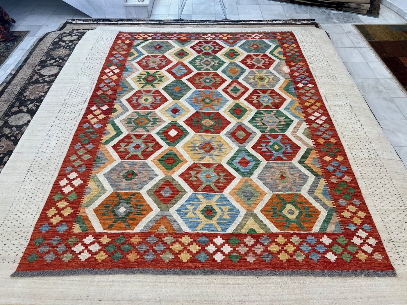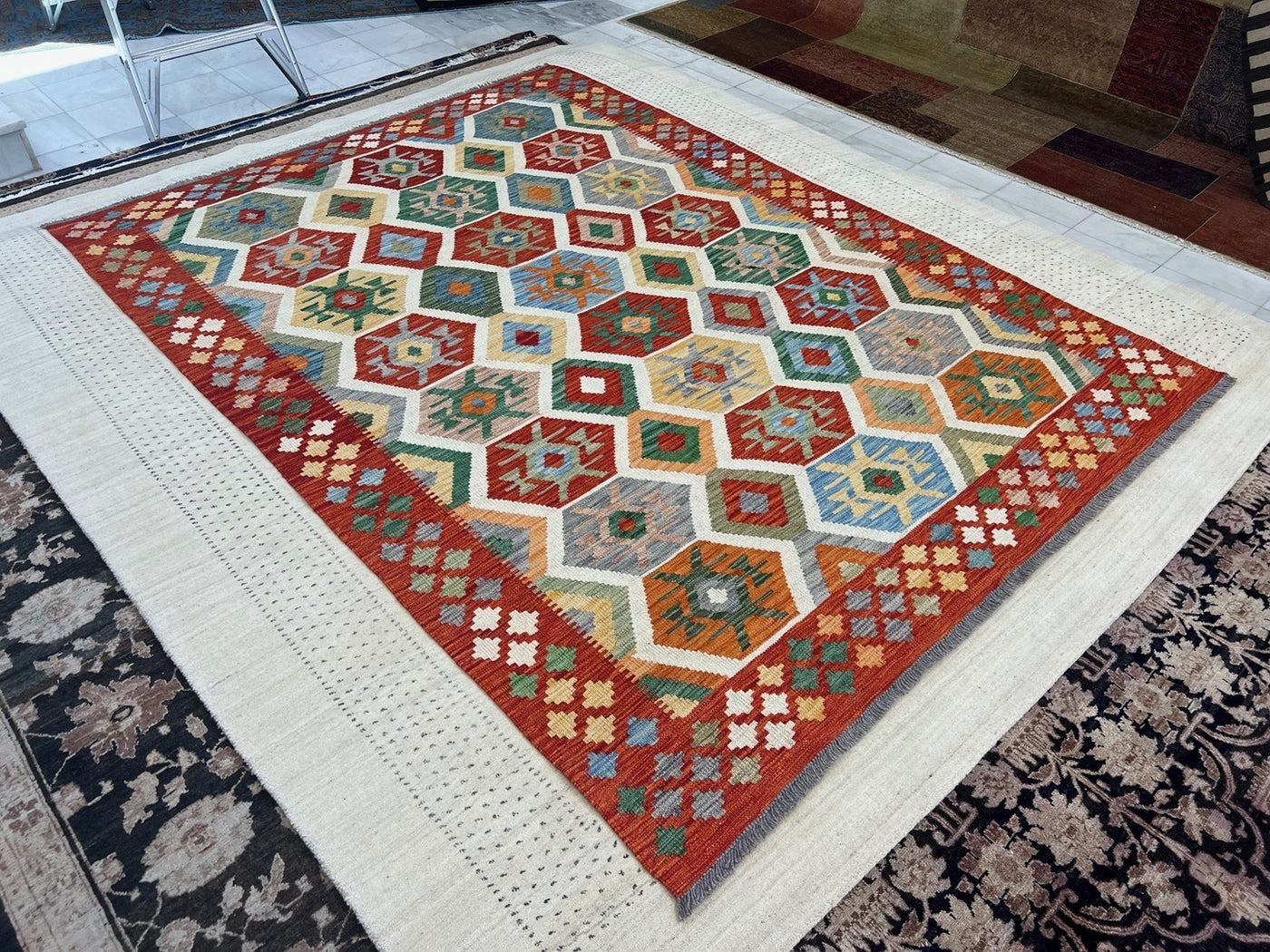 {"id":8304656318564,"title":"KILIM CHOBI RUG - KILSN41 | SIZE: 251CM X 179CM","handle":"afghan-handwoven-kilim-rug-melbourne-kilsn41","description":"\u003cp\u003e\u003cstrong data-mce-fragment=\"1\"\u003eKILIM CHOBI HANDMADE RUGS\u003c\/strong\u003e\u003cbr data-mce-fragment=\"1\"\u003e\u003cbr data-mce-fragment=\"1\"\u003e\u003cspan data-mce-fragment=\"1\"\u003eOur Kilims are collection of original Persian, Afghani and Turkish flat weave master pieces, mostly colourful in Tribal and Traditional designs.\u003c\/span\u003e\u003cbr data-mce-fragment=\"1\"\u003e\u003cbr data-mce-fragment=\"1\"\u003e\u003cstrong data-mce-fragment=\"1\"\u003eRug Number: KILSN41\u003c\/strong\u003e\u003cbr data-mce-fragment=\"1\"\u003e\u003cbr data-mce-fragment=\"1\"\u003e\u003cstrong data-mce-fragment=\"1\"\u003eConstruction: Handwoven\u003c\/strong\u003e\u003cbr data-mce-fragment=\"1\"\u003e\u003cbr data-mce-fragment=\"1\"\u003e\u003cstrong data-mce-fragment=\"1\"\u003eMaterial: Vegtable Dyed Wool\u003c\/strong\u003e\u003cbr data-mce-fragment=\"1\"\u003e\u003cbr data-mce-fragment=\"1\"\u003e\u003cstrong data-mce-fragment=\"1\"\u003eOrigin: Afghanistan\u003c\/strong\u003e\u003cbr data-mce-fragment=\"1\"\u003e\u003cbr data-mce-fragment=\"1\"\u003e\u003cspan data-mce-fragment=\"1\"\u003e* * * * * * * * * * * * * * * * * * * * * * * * * * * * * * * * * * * * *\u003c\/span\u003e\u003cbr data-mce-fragment=\"1\"\u003e\u003cbr data-mce-fragment=\"1\"\u003e\u003cstrong data-mce-fragment=\"1\"\u003eREASON FOR COLOUR VARIATION IN IMAGES\u003c\/strong\u003e\u003cbr data-mce-fragment=\"1\"\u003e\u003cbr data-mce-fragment=\"1\"\u003e\u003cspan data-mce-fragment=\"1\"\u003eAll hand knotted rugs have a smooth pile side and a rough pile side. The direction of a rug’s pile results in it’s light and dark shades.\u003c\/span\u003e\u003cbr data-mce-fragment=\"1\"\u003e\u003cbr data-mce-fragment=\"1\"\u003e\u003cspan data-mce-fragment=\"1\"\u003eThe smooth pile side reflects the light, giving the rug a lighter tone whilst the rough pile side absorb the light giving the rug a dark or deeper tone.\u003c\/span\u003e\u003cbr data-mce-fragment=\"1\"\u003e\u003cbr data-mce-fragment=\"1\"\u003e\u003cspan data-mce-fragment=\"1\"\u003eThe colours of a rug will appear either lighter or darker depending on which side the viewer is standing or taking images.\u003c\/span\u003e\u003c\/p\u003e","published_at":"2025-12-12T14:53:52+11:00","created_at":"2025-12-12T14:53:52+11:00","vendor":"Silk Road Handmade Rugs","type":"","tags":[],"price":69500,"price_min":69500,"price_max":69500,"available":true,"price_varies":false,"compare_at_price":139500,"compare_at_price_min":139500,"compare_at_price_max":139500,"compare_at_price_varies":false,"variants":[{"id":47513299452004,"title":"Default Title","option1":"Default Title","option2":null,"option3":null,"sku":"KILSN41","requires_shipping":true,"taxable":false,"featured_image":null,"available":true,"name":"KILIM CHOBI RUG - KILSN41 | SIZE: 251CM X 179CM","public_title":null,"options":["Default Title"],"price":69500,"weight":0,"compare_at_price":139500,"inventory_management":"shopify","barcode":null,"requires_selling_plan":false,"selling_plan_allocations":[]}],"images":["\/\/www.silkroadrugs.com.au\/cdn\/shop\/files\/Image14_8dd5203d-1451-4baf-98bb-437b78c637e5.jpg?v=1765511699","\/\/www.silkroadrugs.com.au\/cdn\/shop\/files\/2_dfad7bb1-0d6f-4b27-ac2f-fe50fcac547a.jpg?v=1765511699","\/\/www.silkroadrugs.com.au\/cdn\/shop\/files\/3_d2285f3e-80cb-464a-9c7f-a44c85741c3d.jpg?v=1765511699","\/\/www.silkroadrugs.com.au\/cdn\/shop\/files\/4_29415f1e-73bb-4ef3-bade-f46fcc4f876d.jpg?v=1765511699","\/\/www.silkroadrugs.com.au\/cdn\/shop\/files\/5_6ef3bc37-e344-4fd0-99f5-62c5df7cd6ed.jpg?v=1765511699","\/\/www.silkroadrugs.com.au\/cdn\/shop\/files\/10_2bc928ea-61b1-4bbe-b44a-40773ec39980.jpg?v=1765511699","\/\/www.silkroadrugs.com.au\/cdn\/shop\/files\/6_772e3bcb-6c08-4760-bc28-4586ce66fb9a.jpg?v=1765511699","\/\/www.silkroadrugs.com.au\/cdn\/shop\/files\/7_a8a492ba-d3ec-4036-9fde-619f7502f88e.jpg?v=1765511699","\/\/www.silkroadrugs.com.au\/cdn\/shop\/files\/8_941540e1-3865-4887-9a56-a4d4a88fa47c.jpg?v=1765511699","\/\/www.silkroadrugs.com.au\/cdn\/shop\/files\/9_5735dde9-7bd3-4eea-9962-5efe65a4b604.jpg?v=1765511699","\/\/www.silkroadrugs.com.au\/cdn\/shop\/files\/11_499fab8a-9ca5-4d42-aaa1-cfedee69519d.jpg?v=1765511699","\/\/www.silkroadrugs.com.au\/cdn\/shop\/files\/12_4df0d4d9-59bf-48cd-a659-fe8c7cc5b6e1.jpg?v=1765511699"],"featured_image":"\/\/www.silkroadrugs.com.au\/cdn\/shop\/files\/Image14_8dd5203d-1451-4baf-98bb-437b78c637e5.jpg?v=1765511699","options":["Title"],"media":[{"alt":null,"id":30869716598884,"position":1,"preview_image":{"aspect_ratio":0.702,"height":1421,"width":998,"src":"\/\/www.silkroadrugs.com.au\/cdn\/shop\/files\/Image14_8dd5203d-1451-4baf-98bb-437b78c637e5.jpg?v=1765511699"},"aspect_ratio":0.702,"height":1421,"media_type":"image","src":"\/\/www.silkroadrugs.com.au\/cdn\/shop\/files\/Image14_8dd5203d-1451-4baf-98bb-437b78c637e5.jpg?v=1765511699","width":998},{"alt":null,"id":30869715124324,"position":2,"preview_image":{"aspect_ratio":1.333,"height":1125,"width":1500,"src":"\/\/www.silkroadrugs.com.au\/cdn\/shop\/files\/2_dfad7bb1-0d6f-4b27-ac2f-fe50fcac547a.jpg?v=1765511699"},"aspect_ratio":1.333,"height":1125,"media_type":"image","src":"\/\/www.silkroadrugs.com.au\/cdn\/shop\/files\/2_dfad7bb1-0d6f-4b27-ac2f-fe50fcac547a.jpg?v=1765511699","width":1500},{"alt":null,"id":30869715157092,"position":3,"preview_image":{"aspect_ratio":1.333,"height":1125,"width":1500,"src":"\/\/www.silkroadrugs.com.au\/cdn\/shop\/files\/3_d2285f3e-80cb-464a-9c7f-a44c85741c3d.jpg?v=1765511699"},"aspect_ratio":1.333,"height":1125,"media_type":"image","src":"\/\/www.silkroadrugs.com.au\/cdn\/shop\/files\/3_d2285f3e-80cb-464a-9c7f-a44c85741c3d.jpg?v=1765511699","width":1500},{"alt":null,"id":30869715189860,"position":4,"preview_image":{"aspect_ratio":1.333,"height":1125,"width":1500,"src":"\/\/www.silkroadrugs.co