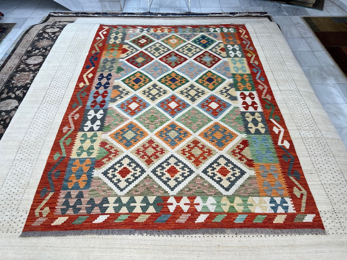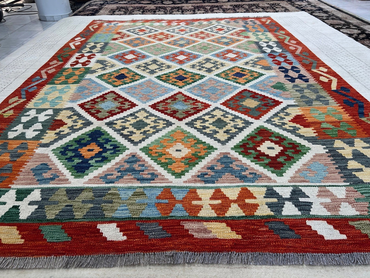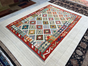 {"id":8304663003236,"title":"KILIM CHOBI RUG - KILSN43 | SIZE: 243CM X 171CM","handle":"afghan-handwoven-kilim-rug-melbourne-kilsn43","description":"\u003cp\u003e\u003cstrong data-mce-fragment=\"1\"\u003eKILIM CHOBI HANDMADE RUGS\u003c\/strong\u003e\u003cbr data-mce-fragment=\"1\"\u003e\u003cbr data-mce-fragment=\"1\"\u003e\u003cspan data-mce-fragment=\"1\"\u003eOur Kilims are collection of original Persian, Afghani and Turkish flat weave master pieces, mostly colourful in Tribal and Traditional designs.\u003c\/span\u003e\u003cbr data-mce-fragment=\"1\"\u003e\u003cbr data-mce-fragment=\"1\"\u003e\u003cstrong data-mce-fragment=\"1\"\u003eRug Number: KILSN43\u003c\/strong\u003e\u003cbr data-mce-fragment=\"1\"\u003e\u003cbr data-mce-fragment=\"1\"\u003e\u003cstrong data-mce-fragment=\"1\"\u003eConstruction: Handwoven\u003c\/strong\u003e\u003cbr data-mce-fragment=\"1\"\u003e\u003cbr data-mce-fragment=\"1\"\u003e\u003cstrong data-mce-fragment=\"1\"\u003eMaterial: Vegtable Dyed Wool\u003c\/strong\u003e\u003cbr data-mce-fragment=\"1\"\u003e\u003cbr data-mce-fragment=\"1\"\u003e\u003cstrong data-mce-fragment=\"1\"\u003eOrigin: Afghanistan\u003c\/strong\u003e\u003cbr data-mce-fragment=\"1\"\u003e\u003cbr data-mce-fragment=\"1\"\u003e\u003cspan data-mce-fragment=\"1\"\u003e* * * * * * * * * * * * * * * * * * * * * * * * * * * * * * * * * * * * *\u003c\/span\u003e\u003cbr data-mce-fragment=\"1\"\u003e\u003cbr data-mce-fragment=\"1\"\u003e\u003cstrong data-mce-fragment=\"1\"\u003eREASON FOR COLOUR VARIATION IN IMAGES\u003c\/strong\u003e\u003cbr data-mce-fragment=\"1\"\u003e\u003cbr data-mce-fragment=\"1\"\u003e\u003cspan data-mce-fragment=\"1\"\u003eAll hand knotted rugs have a smooth pile side and a rough pile side. The direction of a rug’s pile results in it’s light and dark shades.\u003c\/span\u003e\u003cbr data-mce-fragment=\"1\"\u003e\u003cbr data-mce-fragment=\"1\"\u003e\u003cspan data-mce-fragment=\"1\"\u003eThe smooth pile side reflects the light, giving the rug a lighter tone whilst the rough pile side absorb the light giving the rug a dark or deeper tone.\u003c\/span\u003e\u003cbr data-mce-fragment=\"1\"\u003e\u003cbr data-mce-fragment=\"1\"\u003e\u003cspan data-mce-fragment=\"1\"\u003eThe colours of a rug will appear either lighter or darker depending on which side the viewer is standing or taking images.\u003c\/span\u003e\u003c\/p\u003e","published_at":"2025-12-12T14:56:57+11:00","created_at":"2025-12-12T14:56:57+11:00","vendor":"Silk Road Handmade Rugs","type":"","tags":[],"price":69500,"price_min":69500,"price_max":69500,"available":true,"price_varies":false,"compare_at_price":139500,"compare_at_price_min":139500,"compare_at_price_max":139500,"compare_at_price_varies":false,"variants":[{"id":47513314263140,"title":"Default Title","option1":"Default Title","option2":null,"option3":null,"sku":"KILSN43","requires_shipping":true,"taxable":false,"featured_image":null,"available":true,"name":"KILIM CHOBI RUG - KILSN43 | SIZE: 243CM X 171CM","public_title":null,"options":["Default Title"],"price":69500,"weight":0,"compare_at_price":139500,"inventory_management":"shopify","barcode":null,"requires_selling_plan":false,"selling_plan_allocations":[]}],"images":["\/\/www.silkroadrugs.com.au\/cdn\/shop\/files\/Image18_ebf24306-2d48-42e8-8413-02dc3075e973.jpg?v=1765511891","\/\/www.silkroadrugs.com.au\/cdn\/shop\/files\/2_8a9dc5fb-438e-4776-9866-68a3a4320308.jpg?v=1765511891","\/\/www.silkroadrugs.com.au\/cdn\/shop\/files\/3_6f96f43d-881b-4374-9b8e-2d44819a14af.jpg?v=1765511891","\/\/www.silkroadrugs.com.au\/cdn\/shop\/files\/4_b2acff98-b41b-426c-86b0-f87e49192161.jpg?v=1765511891","\/\/www.silkroadrugs.com.au\/cdn\/shop\/files\/5_780c8a4c-fe25-4547-9287-e29c2484bb5b.jpg?v=1765511891","\/\/www.silkroadrugs.com.au\/cdn\/shop\/files\/10_bd6ff83d-02cb-4017-bfc0-627465e5a3f7.jpg?v=1765511891","\/\/www.silkroadrugs.com.au\/cdn\/shop\/files\/6_6258f99b-26d0-4d1b-941e-f292268bbf8e.jpg?v=1765511891","\/\/www.silkroadrugs.com.au\/cdn\/shop\/files\/7_8c1962ce-dc46-4768-863c-685ea0c35be3.jpg?v=1765511891","\/\/www.silkroadrugs.com.au\/cdn\/shop\/files\/8_e861e894-289d-454d-bfdd-97b7adc2279e.jpg?v=1765511891","\/\/www.silkroadrugs.com.au\/cdn\/shop\/files\/9_a00ddf41-19f6-4486-a23e-d7b549910132.jpg?v=1765511891","\/\/www.silkroadrugs.com.au\/cdn\/shop\/files\/11_8d08e6ac-97d5-4b40-8a68-bc3004830c08.jpg?v=1765511891","\/\/www.silkroadrugs.com.au\/cdn\/shop\/files\/12_d68b3803-6789-4e22-a091-b2f3a7388bb5.jpg?v=1765511891"],"featured_image":"\/\/www.silkroadrugs.com.au\/cdn\/shop\/files\/Image18_ebf24306-2d48-42e8-8413-02dc3075e973.jpg?v=1765511891","options":["Title"],"media":[{"alt":null,"id":30869731573860,"position":1,"preview_image":{"aspect_ratio":0.689,"height":1460,"width":1006,"src":"\/\/www.silkroadrugs.com.au\/cdn\/shop\/files\/Image18_ebf24306-2d48-42e8-8413-02dc3075e973.jpg?v=1765511891"},"aspect_ratio":0.689,"height":1460,"media_type":"image","src":"\/\/www.silkroadrugs.com.au\/cdn\/shop\/files\/Image18_ebf24306-2d48-42e8-8413-02dc3075e973.jpg?v=1765511891","width":1006},{"alt":null,"id":30869730656356,"position":2,"preview_image":{"aspect_ratio":1.333,"height":1125,"width":1500,"src":"\/\/www.silkroadrugs.com.au\/cdn\/shop\/files\/2_8a9dc5fb-438e-4776-9866-68a3a4320308.jpg?v=1765511891"},"aspect_ratio":1.333,"height":1125,"media_type":"image","src":"\/\/www.silkroadrugs.com.au\/cdn\/shop\/files\/2_8a9dc5fb-438e-4776-9866-68a3a4320308.jpg?v=1765511891","width":1500},{"alt":null,"id":30869730689124,"position":3,"preview_image":{"aspect_ratio":1.333,"height":1125,"width":1500,"src":"\/\/www.silkroadrugs.com.au\/cdn\/shop\/files\/3_6f96f43d-881b-4374-9b8e-2d44819a14af.jpg?v=1765511891"},"aspect_ratio":1.333,"height":1125,"media_type":"image","src":"\/\/www.silkroadrugs.com.au\/cdn\/shop\/files\/3_6f96f43d-881b-4374-9b8e-2d44819a14af.jpg?v=1765511891","width":1500},{"alt":null,"id":30869730721892,"position":4,"preview_image":{"aspect_ratio":1.333,"height":1125,"width":1500,"src":"\/\/www.silkroadrugs.