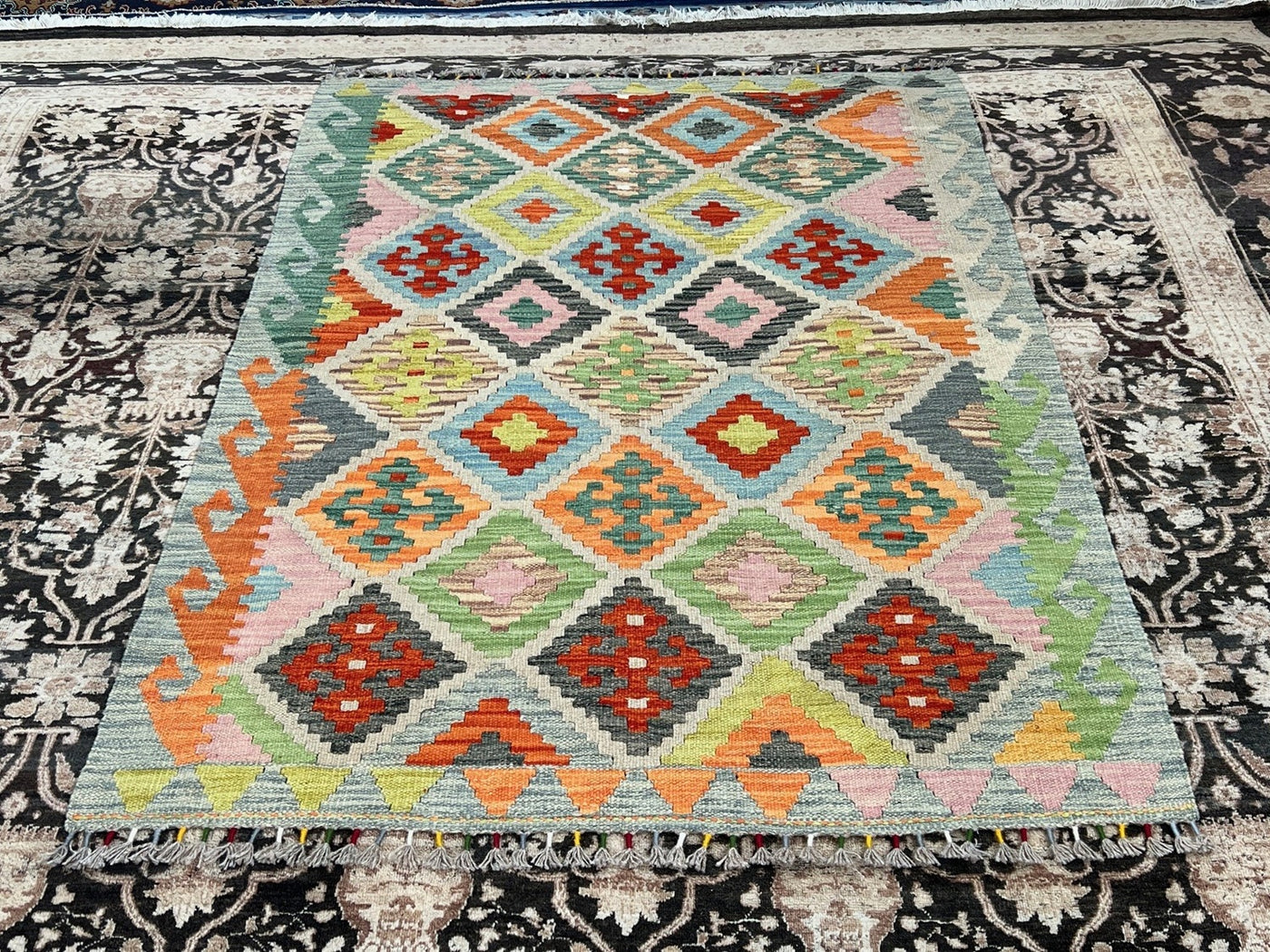 {"id":8295615135844,"title":"KILIM CHOBI RUG - KILSN6 | SIZE: 172CM X 126CM","handle":"afghan-handwoven-kilim-rug-melbourne-kilsn6","description":"\u003cp\u003e\u003cstrong data-mce-fragment=\"1\"\u003eKILIM CHOBI HANDMADE RUGS\u003c\/strong\u003e\u003cbr data-mce-fragment=\"1\"\u003e\u003cbr data-mce-fragment=\"1\"\u003e\u003cspan data-mce-fragment=\"1\"\u003eOur Kilims are collection of original Persian, Afghani and Turkish flat weave master pieces, mostly colourful in Tribal and Traditional designs.\u003c\/span\u003e\u003cbr data-mce-fragment=\"1\"\u003e\u003cbr data-mce-fragment=\"1\"\u003e\u003cstrong data-mce-fragment=\"1\"\u003eRug Number: KILSN6\u003c\/strong\u003e\u003cbr data-mce-fragment=\"1\"\u003e\u003cbr data-mce-fragment=\"1\"\u003e\u003cstrong data-mce-fragment=\"1\"\u003eConstruction: Handwoven\u003c\/strong\u003e\u003cbr data-mce-fragment=\"1\"\u003e\u003cbr data-mce-fragment=\"1\"\u003e\u003cstrong data-mce-fragment=\"1\"\u003eMaterial: Vegtable Dyed Wool\u003c\/strong\u003e\u003cbr data-mce-fragment=\"1\"\u003e\u003cbr data-mce-fragment=\"1\"\u003e\u003cstrong data-mce-fragment=\"1\"\u003eOrigin: Afghanistan\u003c\/strong\u003e\u003cbr data-mce-fragment=\"1\"\u003e\u003cbr data-mce-fragment=\"1\"\u003e\u003cspan data-mce-fragment=\"1\"\u003e* * * * * * * * * * * * * * * * * * * * * * * * * * * * * * * * * * * * *\u003c\/span\u003e\u003cbr data-mce-fragment=\"1\"\u003e\u003cbr data-mce-fragment=\"1\"\u003e\u003cstrong data-mce-fragment=\"1\"\u003eREASON FOR COLOUR VARIATION IN IMAGES\u003c\/strong\u003e\u003cbr data-mce-fragment=\"1\"\u003e\u003cbr data-mce-fragment=\"1\"\u003e\u003cspan data-mce-fragment=\"1\"\u003eAll hand knotted rugs have a smooth pile side and a rough pile side. The direction of a rug’s pile results in it’s light and dark shades.\u003c\/span\u003e\u003cbr data-mce-fragment=\"1\"\u003e\u003cbr data-mce-fragment=\"1\"\u003e\u003cspan data-mce-fragment=\"1\"\u003eThe smooth pile side reflects the light, giving the rug a lighter tone whilst the rough pile side absorb the light giving the rug a dark or deeper tone.\u003c\/span\u003e\u003cbr data-mce-fragment=\"1\"\u003e\u003cbr data-mce-fragment=\"1\"\u003e\u003cspan data-mce-fragment=\"1\"\u003eThe colours of a rug will appear either lighter or darker depending on which side the viewer is standing or taking images.\u003c\/span\u003e\u003c\/p\u003e","published_at":"2025-12-04T12:05:05+11:00","created_at":"2025-12-04T12:05:05+11:00","vendor":"Silk Road Handmade Rugs","type":"","tags":[],"price":39500,"price_min":39500,"price_max":39500,"available":true,"price_varies":false,"compare_at_price":79500,"compare_at_price_min":79500,"compare_at_price_max":79500,"compare_at_price_varies":false,"variants":[{"id":47466364797028,"title":"Default Title","option1":"Default Title","option2":null,"option3":null,"sku":"KILSN6","requires_shipping":true,"taxable":false,"featured_image":null,"available":true,"name":"KILIM CHOBI RUG - KILSN6 | SIZE: 172CM X 126CM","public_title":null,"options":["Default Title"],"price":39500,"weight":0,"compare_at_price":79500,"inventory_management":"shopify","barcode":null,"requires_selling_plan":false,"selling_plan_allocations":[]}],"images":["\/\/www.silkroadrugs.com.au\/cdn\/shop\/files\/Image8_a8cadd5a-531f-4417-bd79-ae90e0870489.jpg?v=1764810439","\/\/www.silkroadrugs.com.au\/cdn\/shop\/files\/2_7715df3c-9606-459f-af82-9df6c2309ccd.jpg?v=1764810439","\/\/www.silkroadrugs.com.au\/cdn\/shop\/files\/3_b7750961-2ac5-44cc-b1e8-60828bfa9940.jpg?v=1764810439","\/\/www.silkroadrugs.com.au\/cdn\/shop\/files\/4_adbf3012-3c7f-421f-86f8-aced340ee862.jpg?v=1764810439","\/\/www.silkroadrugs.com.au\/cdn\/shop\/files\/5_10edc1d9-9ecd-4ec8-ab23-9bffbf6de339.jpg?v=1764810439","\/\/www.silkroadrugs.com.au\/cdn\/shop\/files\/9_35893d12-cf1a-436e-ad17-d7eebf89ac81.jpg?v=1764810439","\/\/www.silkroadrugs.com.au\/cdn\/shop\/files\/6_1a1e6419-05fa-4863-a82b-df2d6b3756d8.jpg?v=1764810439","\/\/www.silkroadrugs.com.au\/cdn\/shop\/files\/7_ada71df1-3940-4458-a79a-0e756175e12a.jpg?v=1764810439","\/\/www.silkroadrugs.com.au\/cdn\/shop\/files\/8_f9c12168-17cd-458f-9992-66b02baa6396.jpg?v=1764810439","\/\/www.silkroadrugs.com.au\/cdn\/shop\/files\/10_edaa607b-df6b-4201-83ba-5d97cb843dac.jpg?v=1764810439","\/\/www.silkroadrugs.com.au\/cdn\/shop\/files\/11_f77676d6-4a27-41d7-9fbb-26a7f611037e.jpg?v=1764810439"],"featured_image":"\/\/www.silkroadrugs.com.au\/cdn\/shop\/files\/Image8_a8cadd5a-531f-4417-bd79-ae90e0870489.jpg?v=1764810439","options":["Title"],"media":[{"alt":null,"id":30803754942564,"position":1,"preview_image":{"aspect_ratio":0.704,"height":1451,"width":1022,"src":"\/\/www.silkroadrugs.com.au\/cdn\/shop\/files\/Image8_a8cadd5a-531f-4417-bd79-ae90e0870489.jpg?v=1764810439"},"aspect_ratio":0.704,"height":1451,"media_type":"image","src":"\/\/www.silkroadrugs.com.au\/cdn\/shop\/files\/Image8_a8cadd5a-531f-4417-bd79-ae90e0870489.jpg?v=1764810439","width":1022},{"alt":null,"id":30803752550500,"position":2,"preview_image":{"aspect_ratio":1.333,"height":1125,"width":1500,"src":"\/\/www.silkroadrugs.com.au\/cdn\/shop\/files\/2_7715df3c-9606-459f-af82-9df6c2309ccd.jpg?v=1764810439"},"aspect_ratio":1.333,"height":1125,"media_type":"image","src":"\/\/www.silkroadrugs.com.au\/cdn\/shop\/files\/2_7715df3c-9606-459f-af82-9df6c2309ccd.jpg?v=1764810439","width":1500},{"alt":null,"id":30803752583268,"position":3,"preview_image":{"aspect_ratio":1.333,"height":1125,"width":1500,"src":"\/\/www.silkroadrugs.com.au\/cdn\/shop\/files\/3_b7750961-2ac5-44cc-b1e8-60828bfa9940.jpg?v=1764810439"},"aspect_ratio":1.333,"height":1125,"media_type":"image","src":"\/\/www.silkroadrugs.com.au\/cdn\/shop\/files\/3_b7750961-2ac5-44cc-b1e8-60828bfa9940.jpg?v=1764810439","width":1500},{"alt":null,"id":30803752616036,"position":4,"preview_image":{"aspect_ratio":1.333,"height":1125,"width":1500,"src":"\/\/www.silkroadrugs.com.au\/cdn\/shop\/files\/4_adbf3012-3c7f-421f-86f8-aced340ee862.jpg?v=1764810439"},"aspect_ratio":1.333,"height":1125,