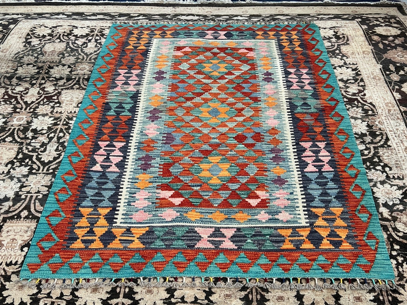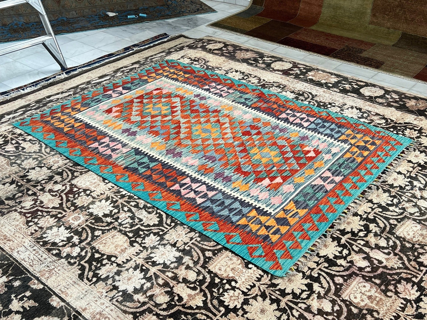 {"id":8297714188388,"title":"KILIM CHOBI RUG - KILSN7 | SIZE: 184CM X 128CM","handle":"afghan-handwoven-kilim-rug-melbourne-kilsn7","description":"\u003cp\u003e\u003cstrong data-mce-fragment=\"1\"\u003eKILIM CHOBI HANDMADE RUGS\u003c\/strong\u003e\u003cbr data-mce-fragment=\"1\"\u003e\u003cbr data-mce-fragment=\"1\"\u003e\u003cspan data-mce-fragment=\"1\"\u003eOur Kilims are collection of original Persian, Afghani and Turkish flat weave master pieces, mostly colourful in Tribal and Traditional designs.\u003c\/span\u003e\u003cbr data-mce-fragment=\"1\"\u003e\u003cbr data-mce-fragment=\"1\"\u003e\u003cstrong data-mce-fragment=\"1\"\u003eRug Number: KILSN7\u003c\/strong\u003e\u003cbr data-mce-fragment=\"1\"\u003e\u003cbr data-mce-fragment=\"1\"\u003e\u003cstrong data-mce-fragment=\"1\"\u003eConstruction: Handwoven\u003c\/strong\u003e\u003cbr data-mce-fragment=\"1\"\u003e\u003cbr data-mce-fragment=\"1\"\u003e\u003cstrong data-mce-fragment=\"1\"\u003eMaterial: Vegtable Dyed Wool\u003c\/strong\u003e\u003cbr data-mce-fragment=\"1\"\u003e\u003cbr data-mce-fragment=\"1\"\u003e\u003cstrong data-mce-fragment=\"1\"\u003eOrigin: Afghanistan\u003c\/strong\u003e\u003cbr data-mce-fragment=\"1\"\u003e\u003cbr data-mce-fragment=\"1\"\u003e\u003cspan data-mce-fragment=\"1\"\u003e* * * * * * * * * * * * * * * * * * * * * * * * * * * * * * * * * * * * *\u003c\/span\u003e\u003cbr data-mce-fragment=\"1\"\u003e\u003cbr data-mce-fragment=\"1\"\u003e\u003cstrong data-mce-fragment=\"1\"\u003eREASON FOR COLOUR VARIATION IN IMAGES\u003c\/strong\u003e\u003cbr data-mce-fragment=\"1\"\u003e\u003cbr data-mce-fragment=\"1\"\u003e\u003cspan data-mce-fragment=\"1\"\u003eAll hand knotted rugs have a smooth pile side and a rough pile side. The direction of a rug’s pile results in it’s light and dark shades.\u003c\/span\u003e\u003cbr data-mce-fragment=\"1\"\u003e\u003cbr data-mce-fragment=\"1\"\u003e\u003cspan data-mce-fragment=\"1\"\u003eThe smooth pile side reflects the light, giving the rug a lighter tone whilst the rough pile side absorb the light giving the rug a dark or deeper tone.\u003c\/span\u003e\u003cbr data-mce-fragment=\"1\"\u003e\u003cbr data-mce-fragment=\"1\"\u003e\u003cspan data-mce-fragment=\"1\"\u003eThe colours of a rug will appear either lighter or darker depending on which side the viewer is standing or taking images.\u003c\/span\u003e\u003c\/p\u003e","published_at":"2025-12-06T14:12:53+11:00","created_at":"2025-12-06T14:12:53+11:00","vendor":"Silk Road Handmade Rugs","type":"","tags":[],"price":39500,"price_min":39500,"price_max":39500,"available":true,"price_varies":false,"compare_at_price":79500,"compare_at_price_min":79500,"compare_at_price_max":79500,"compare_at_price_varies":false,"variants":[{"id":47481749504100,"title":"Default Title","option1":"Default Title","option2":null,"option3":null,"sku":"KILSN7","requires_shipping":true,"taxable":false,"featured_image":null,"available":true,"name":"KILIM CHOBI RUG - KILSN7 | SIZE: 184CM X 128CM","public_title":null,"options":["Default Title"],"price":39500,"weight":0,"compare_at_price":79500,"inventory_management":"shopify","barcode":null,"requires_selling_plan":false,"selling_plan_allocations":[]}],"images":["\/\/www.silkroadrugs.com.au\/cdn\/shop\/files\/Image2_897db16e-d8a9-4f76-a3c9-afffeca130b5.jpg?v=1764990896","\/\/www.silkroadrugs.com.au\/cdn\/shop\/files\/2_00a986ed-5c01-481d-9456-0db8a0570ec1.jpg?v=1764990896","\/\/www.silkroadrugs.com.au\/cdn\/shop\/files\/3_81e0ab67-3c6c-4f37-9989-9b4a6f660a0b.jpg?v=1764990896","\/\/www.silkroadrugs.com.au\/cdn\/shop\/files\/4_9dfb3142-7d75-41e0-9a20-89a57b9fa8dc.jpg?v=1764990896","\/\/www.silkroadrugs.com.au\/cdn\/shop\/files\/5_3d8261fc-f9dc-4bac-8697-5dd0b447003c.jpg?v=1764990896","\/\/www.silkroadrugs.com.au\/cdn\/shop\/files\/9_21d51ee3-8c30-43a2-aa69-12ac859e8b54.jpg?v=1764990896","\/\/www.silkroadrugs.com.au\/cdn\/shop\/files\/6_c560c132-dd7d-4b1c-b5c2-32884d364991.jpg?v=1764990896","\/\/www.silkroadrugs.com.au\/cdn\/shop\/files\/7_f7d760dc-7f07-4da1-acc1-ef8b8e67cc1c.jpg?v=1764990896","\/\/www.silkroadrugs.com.au\/cdn\/shop\/files\/8_c9e080e8-ce04-4960-bb4b-6cbfc71c9c3f.jpg?v=1764990896","\/\/www.silkroadrugs.com.au\/cdn\/shop\/files\/10_3e5214e5-868b-4616-be63-8dfdcf8f8fe1.jpg?v=1764990896","\/\/www.silkroadrugs.com.au\/cdn\/shop\/files\/11_84da802e-d9e5-487f-ada0-373a47579d45.jpg?v=1764990896"],"featured_image":"\/\/www.silkroadrugs.com.au\/cdn\/shop\/files\/Image2_897db16e-d8a9-4f76-a3c9-afffeca130b5.jpg?v=1764990896","options":["Title"],"media":[{"alt":null,"id":30820981801060,"position":1,"preview_image":{"aspect_ratio":0.7,"height":1459,"width":1022,"src":"\/\/www.silkroadrugs.com.au\/cdn\/shop\/files\/Image2_897db16e-d8a9-4f76-a3c9-afffeca130b5.jpg?v=1764990896"},"aspect_ratio":0.7,"height":1459,"media_type":"image","src":"\/\/www.silkroadrugs.com.au\/cdn\/shop\/files\/Image2_897db16e-d8a9-4f76-a3c9-afffeca130b5.jpg?v=1764990896","width":1022},{"alt":null,"id":30820979769444,"position":2,"preview_image":{"aspect_ratio":1.333,"height":1125,"width":1500,"src":"\/\/www.silkroadrugs.com.au\/cdn\/shop\/files\/2_00a986ed-5c01-481d-9456-0db8a0570ec1.jpg?v=1764990896"},"aspect_ratio":1.333,"height":1125,"media_type":"image","src":"\/\/www.silkroadrugs.com.au\/cdn\/shop\/files\/2_00a986ed-5c01-481d-9456-0db8a0570ec1.jpg?v=1764990896","width":1500},{"alt":null,"id":30820979802212,"position":3,"preview_image":{"aspect_ratio":1.333,"height":1125,"width":1500,"src":"\/\/www.silkroadrugs.com.au\/cdn\/shop\/files\/3_81e0ab67-3c6c-4f37-9989-9b4a6f660a0b.jpg?v=1764990896"},"aspect_ratio":1.333,"height":1125,"media_type":"image","src":"\/\/www.silkroadrugs.com.au\/cdn\/shop\/files\/3_81e0ab67-3c6c-4f37-9989-9b4a6f660a0b.jpg?v=1764990896","width":1500},{"alt":null,"id":30820979834980,"position":4,"preview_image":{"aspect_ratio":1.333,"height":1125,"width":1500,"src":"\/\/www.silkroadrugs.com.au\/cdn\/shop\/files\/4_9dfb3142-7d75-41e0-9a20-89a57b9fa8dc.jpg?v=1764990896"},"aspect_ratio":1.333,"height":1125,"med