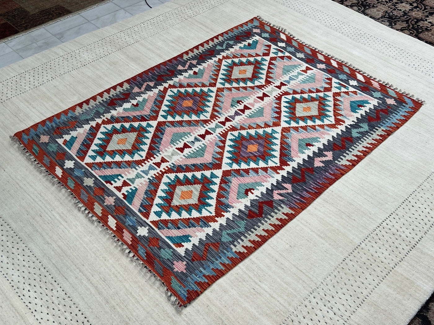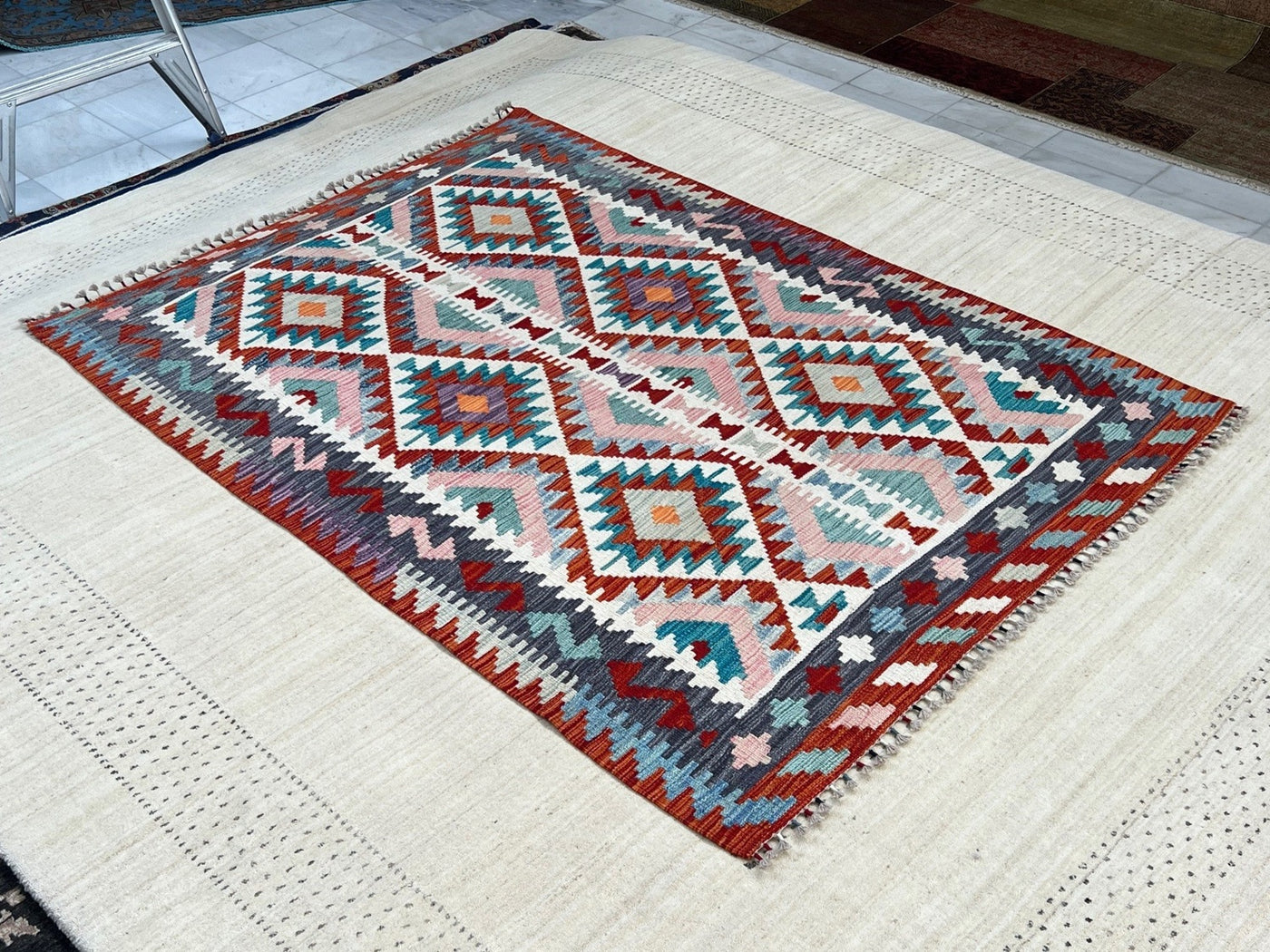 {"id":8297714745444,"title":"KILIM CHOBI RUG - KILSN8 | SIZE: 181CM X 129CM","handle":"afghan-handwoven-kilim-rug-melbourne-kilsn8","description":"\u003cp\u003e\u003cstrong data-mce-fragment=\"1\"\u003eKILIM CHOBI HANDMADE RUGS\u003c\/strong\u003e\u003cbr data-mce-fragment=\"1\"\u003e\u003cbr data-mce-fragment=\"1\"\u003e\u003cspan data-mce-fragment=\"1\"\u003eOur Kilims are collection of original Persian, Afghani and Turkish flat weave master pieces, mostly colourful in Tribal and Traditional designs.\u003c\/span\u003e\u003cbr data-mce-fragment=\"1\"\u003e\u003cbr data-mce-fragment=\"1\"\u003e\u003cstrong data-mce-fragment=\"1\"\u003eRug Number: KILSN8\u003c\/strong\u003e\u003cbr data-mce-fragment=\"1\"\u003e\u003cbr data-mce-fragment=\"1\"\u003e\u003cstrong data-mce-fragment=\"1\"\u003eConstruction: Handwoven\u003c\/strong\u003e\u003cbr data-mce-fragment=\"1\"\u003e\u003cbr data-mce-fragment=\"1\"\u003e\u003cstrong data-mce-fragment=\"1\"\u003eMaterial: Vegtable Dyed Wool\u003c\/strong\u003e\u003cbr data-mce-fragment=\"1\"\u003e\u003cbr data-mce-fragment=\"1\"\u003e\u003cstrong data-mce-fragment=\"1\"\u003eOrigin: Afghanistan\u003c\/strong\u003e\u003cbr data-mce-fragment=\"1\"\u003e\u003cbr data-mce-fragment=\"1\"\u003e\u003cspan data-mce-fragment=\"1\"\u003e* * * * * * * * * * * * * * * * * * * * * * * * * * * * * * * * * * * * *\u003c\/span\u003e\u003cbr data-mce-fragment=\"1\"\u003e\u003cbr data-mce-fragment=\"1\"\u003e\u003cstrong data-mce-fragment=\"1\"\u003eREASON FOR COLOUR VARIATION IN IMAGES\u003c\/strong\u003e\u003cbr data-mce-fragment=\"1\"\u003e\u003cbr data-mce-fragment=\"1\"\u003e\u003cspan data-mce-fragment=\"1\"\u003eAll hand knotted rugs have a smooth pile side and a rough pile side. The direction of a rug’s pile results in it’s light and dark shades.\u003c\/span\u003e\u003cbr data-mce-fragment=\"1\"\u003e\u003cbr data-mce-fragment=\"1\"\u003e\u003cspan data-mce-fragment=\"1\"\u003eThe smooth pile side reflects the light, giving the rug a lighter tone whilst the rough pile side absorb the light giving the rug a dark or deeper tone.\u003c\/span\u003e\u003cbr data-mce-fragment=\"1\"\u003e\u003cbr data-mce-fragment=\"1\"\u003e\u003cspan data-mce-fragment=\"1\"\u003eThe colours of a rug will appear either lighter or darker depending on which side the viewer is standing or taking images.\u003c\/span\u003e\u003c\/p\u003e","published_at":"2025-12-06T14:15:12+11:00","created_at":"2025-12-06T14:15:12+11:00","vendor":"Silk Road Handmade Rugs","type":"","tags":[],"price":39500,"price_min":39500,"price_max":39500,"available":true,"price_varies":false,"compare_at_price":79500,"compare_at_price_min":79500,"compare_at_price_max":79500,"compare_at_price_varies":false,"variants":[{"id":47481752748132,"title":"Default Title","option1":"Default Title","option2":null,"option3":null,"sku":"KILSN8","requires_shipping":true,"taxable":false,"featured_image":null,"available":true,"name":"KILIM CHOBI RUG - KILSN8 | SIZE: 181CM X 129CM","public_title":null,"options":["Default Title"],"price":39500,"weight":0,"compare_at_price":79500,"inventory_management":"shopify","barcode":null,"requires_selling_plan":false,"selling_plan_allocations":[]}],"images":["\/\/www.silkroadrugs.com.au\/cdn\/shop\/files\/Image4_306be5ca-acb4-4f43-8c21-626595e450ea.jpg?v=1764991005","\/\/www.silkroadrugs.com.au\/cdn\/shop\/files\/2_c67ead54-4bce-4ab8-86ee-536a74d0e230.jpg?v=1764991005","\/\/www.silkroadrugs.com.au\/cdn\/shop\/files\/3_2655509c-581b-4ee8-9090-9bff44ec2be4.jpg?v=1764991005","\/\/www.silkroadrugs.com.au\/cdn\/shop\/files\/4_e6b6270d-f685-4108-909e-d0a74fc98266.jpg?v=1764991005","\/\/www.silkroadrugs.com.au\/cdn\/shop\/files\/5_72ea077c-a9cd-4d1e-b4af-e469ccf35dbe.jpg?v=1764991005","\/\/www.silkroadrugs.com.au\/cdn\/shop\/files\/9_d3b4d654-09ad-4f70-90f1-bc9dc3840294.jpg?v=1764991005","\/\/www.silkroadrugs.com.au\/cdn\/shop\/files\/6_b9dd8897-f694-4a4c-9207-7cceb6643e5a.jpg?v=1764991005","\/\/www.silkroadrugs.com.au\/cdn\/shop\/files\/7_8a49a4d3-cb44-4131-ab8a-ecd435a42c85.jpg?v=1764991005","\/\/www.silkroadrugs.com.au\/cdn\/shop\/files\/8_8a81a823-a168-4d61-95f8-c780397612d7.jpg?v=1764991005","\/\/www.silkroadrugs.com.au\/cdn\/shop\/files\/10_9ea15227-4d65-404b-b3d3-1ba351ae1bb7.jpg?v=1764991005","\/\/www.silkroadrugs.com.au\/cdn\/shop\/files\/11_e7a55bb4-c911-4a59-b705-707c1fd35c22.jpg?v=1764991005"],"featured_image":"\/\/www.silkroadrugs.com.au\/cdn\/shop\/files\/Image4_306be5ca-acb4-4f43-8c21-626595e450ea.jpg?v=1764991005","options":["Title"],"media":[{"alt":null,"id":30820987306084,"position":1,"preview_image":{"aspect_ratio":0.726,"height":1458,"width":1059,"src":"\/\/www.silkroadrugs.com.au\/cdn\/shop\/files\/Image4_306be5ca-acb4-4f43-8c21-626595e450ea.jpg?v=1764991005"},"aspect_ratio":0.726,"height":1458,"media_type":"image","src":"\/\/www.silkroadrugs.com.au\/cdn\/shop\/files\/Image4_306be5ca-acb4-4f43-8c21-626595e450ea.jpg?v=1764991005","width":1059},{"alt":null,"id":30820983570532,"position":2,"preview_image":{"aspect_ratio":1.333,"height":1125,"width":1500,"src":"\/\/www.silkroadrugs.com.au\/cdn\/shop\/files\/2_c67ead54-4bce-4ab8-86ee-536a74d0e230.jpg?v=1764991005"},"aspect_ratio":1.333,"height":1125,"media_type":"image","src":"\/\/www.silkroadrugs.com.au\/cdn\/shop\/files\/2_c67ead54-4bce-4ab8-86ee-536a74d0e230.jpg?v=1764991005","width":1500},{"alt":null,"id":30820983603300,"position":3,"preview_image":{"aspect_ratio":1.333,"height":1125,"width":1500,"src":"\/\/www.silkroadrugs.com.au\/cdn\/shop\/files\/3_2655509c-581b-4ee8-9090-9bff44ec2be4.jpg?v=1764991005"},"aspect_ratio":1.333,"height":1125,"media_type":"image","src":"\/\/www.silkroadrugs.com.au\/cdn\/shop\/files\/3_2655509c-581b-4ee8-9090-9bff44ec2be4.jpg?v=1764991005","width":1500},{"alt":null,"id":30820983636068,"position":4,"preview_image":{"aspect_ratio":1.333,"height":1125,"width":1500,"src":"\/\/www.silkroadrugs.com.au\/cdn\/shop\/files\/4_e6b6270d-f685-4108-909e-d0a74fc98266.jpg?v=1764991005"},"aspect_ratio":1.333,"height":1125,