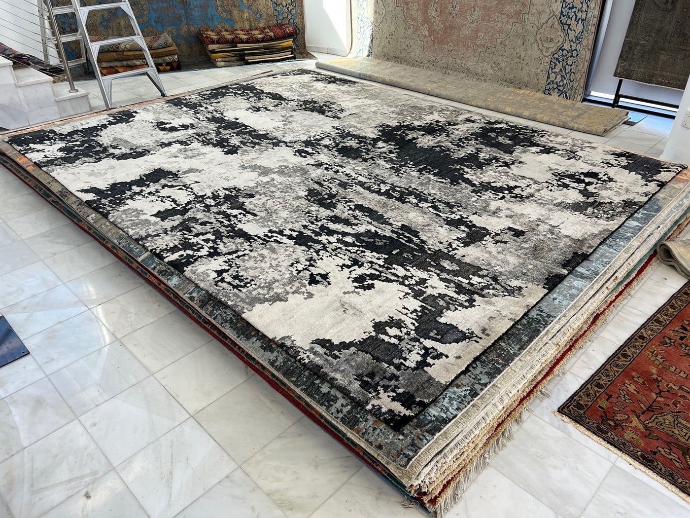 {"id":8279285039204,"title":"MODERN RUG - MOD134 | SIZE: 360CM X 275CM","handle":"modern-handmade-rug-melbourne-mod134","description":"\u003cp\u003e\u003cstrong\u003eMODERN HANDMADE RUG \u003c\/strong\u003e\u003cbr\u003e\u003cbr\u003eOur modern handmade rugs collection contains simple textured and abstract designs which will be the feature in a unclutterd and contemporary space. These unique abstract rugs use colour and pattern to depict rhythm and emotion. The collection uses a combination of natural raw materials, strong vivid colours and earthy subtle tones.\u003cbr data-mce-fragment=\"1\"\u003e\u003cbr\u003e\u003cstrong\u003eRug Number: MOD134\u003c\/strong\u003e\u003cbr\u003e\u003cbr\u003e\u003cstrong\u003eConstruction: Hand knotted\u003c\/strong\u003e\u003cbr\u003e\u003cbr\u003e\u003cstrong\u003eMaterial: Wool \u0026amp; art silk\u003c\/strong\u003e\u003cbr\u003e\u003cbr\u003e\u003cstrong\u003eOrigin: India\u003c\/strong\u003e\u003c\/p\u003e\n\u003cp\u003e* * * * * * * * * * * * * * * * * * * * * * * * * * * * * * * * * * * * *\u003c\/p\u003e\n\u003cp\u003e\u003cstrong\u003eREASON FOR COLOUR VARIATION IN IMAGES\u003c\/strong\u003e\u003c\/p\u003e\n\u003cp\u003eAll hand knotted rugs have a smooth pile side and a rough pile side. The direction of a rug’s pile results in it’s light and dark shades.\u003cbr\u003e\u003c\/p\u003e\n\u003cp\u003eThe smooth pile side reflects the light, giving the rug a lighter tone whilst the rough pile side absorb the light giving the rug a dark or deeper tone.\u003c\/p\u003e\n\u003cp\u003eThe colours of a rug will appear either lighter or darker depending on which side the viewer is standing or taking images.\u003c\/p\u003e","published_at":"2025-11-22T14:27:47+11:00","created_at":"2025-11-22T14:27:47+11:00","vendor":"Silk Road Handamde Rugs","type":"","tags":[],"price":495000,"price_min":495000,"price_max":495000,"available":true,"price_varies":false,"compare_at_price":1150000,"compare_at_price_min":1150000,"compare_at_price_max":1150000,"compare_at_price_varies":false,"variants":[{"id":47369620357220,"title":"Default Title","option1":"Default Title","option2":null,"option3":null,"sku":"MOD134","requires_shipping":true,"taxable":false,"featured_image":null,"available":true,"name":"MODERN RUG - MOD134 | SIZE: 360CM X 275CM","public_title":null,"options":["Default Title"],"price":495000,"weight":0,"compare_at_price":1150000,"inventory_management":"shopify","barcode":null,"requires_selling_plan":false,"selling_plan_allocations":[]}],"images":["\/\/www.silkroadrugs.com.au\/cdn\/shop\/files\/Image4_8d40b554-30ad-482f-b8c1-dec269da0339.jpg?v=1763783246","\/\/www.silkroadrugs.com.au\/cdn\/shop\/files\/2_71b95233-2faa-4466-b6df-e866c64272c4.jpg?v=1763783246","\/\/www.silkroadrugs.com.au\/cdn\/shop\/files\/3_ef2e2649-d798-48f6-8e3b-c5d164afd7aa.jpg?v=1763783246","\/\/www.silkroadrugs.com.au\/cdn\/shop\/files\/4_3961a845-b13c-499d-95b5-3377204cb7ec.jpg?v=1763783246","\/\/www.silkroadrugs.com.au\/cdn\/shop\/files\/5_241b14c7-9e81-4d12-86d0-0a52dc7c100b.jpg?v=1763783246","\/\/www.silkroadrugs.com.au\/cdn\/shop\/files\/10_8f030547-0739-4df6-b95e-c06d817c5066.jpg?v=1763783246","\/\/www.silkroadrugs.com.au\/cdn\/shop\/files\/6_666a148c-7571-4e4b-a216-0e8d034e70e0.jpg?v=1763783246","\/\/www.silkroadrugs.com.au\/cdn\/shop\/files\/7_3e84f255-f888-45cc-8508-97e9506b6f48.jpg?v=1763783246","\/\/www.silkroadrugs.com.au\/cdn\/shop\/files\/8_f1a9f631-35d8-45d2-95f3-fea790df4d6f.jpg?v=1763783246","\/\/www.silkroadrugs.com.au\/cdn\/shop\/files\/9_e16d3da8-b3e8-40e4-a7cc-7ba575466348.jpg?v=1763783246","\/\/www.silkroadrugs.com.au\/cdn\/shop\/files\/11_8d57f9f8-3d8e-411f-a7e8-e69b4af2cc03.jpg?v=1763783246","\/\/www.silkroadrugs.com.au\/cdn\/shop\/files\/12_ce7e5cea-4baa-4da3-aa22-44f40bbd03bd.jpg?v=1763783246"],"featured_image":"\/\/www.silkroadrugs.com.au\/cdn\/shop\/files\/Image4_8d40b554-30ad-482f-b8c1-dec269da0339.jpg?v=1763783246","options":["Title"],"media":[{"alt":null,"id":30697264611428,"position":1,"preview_image":{"aspect_ratio":0.767,"height":1454,"width":1115,"src":"\/\/www.silkroadrugs.com.au\/cdn\/shop\/files\/Image4_8d40b554-30ad-482f-b8c1-dec269da0339.jpg?v=1763783246"},"aspect_ratio":0.767,"height":1454,"media_type":"image","src":"\/\/www.silkroadrugs.com.au\/cdn\/shop\/files\/Image4_8d40b554-30ad-482f-b8c1-dec269da0339.jpg?v=1763783246","width":1115},{"alt":null,"id":30697236922468,"position":2,"preview_image":{"aspect_ratio":1.333,"height":1125,"width":1500,"src":"\/\/www.silkroadrugs.com.au\/cdn\/shop\/files\/2_71b95233-2faa-4466-b6df-e866c64272c4.jpg?v=1763783246"},"aspect_ratio":1.333,"height":1125,"media_type":"image","src":"\/\/www.silkroadrugs.com.au\/cdn\/shop\/files\/2_71b95233-2faa-4466-b6df-e866c64272c4.jpg?v=1763783246","width":1500},{"alt":null,"id":30697236955236,"position":3,"preview_image":{"aspect_ratio":1.333,"height":1125,"width":1500,"src":"\/\/www.silkroadrugs.com.au\/cdn\/shop\/files\/3_ef2e2649-d798-48f6-8e3b-c5d164afd7aa.jpg?v=1763783246"},"aspect_ratio":1.333,"height":1125,"media_type":"image","src":"\/\/www.silkroadrugs.com.au\/cdn\/shop\/files\/3_ef2e2649-d798-48f6-8e3b-c5d164afd7aa.jpg?v=1763783246","width":1500},{"alt":null,"id":30697236988004,"position":4,"preview_image":{"aspect_ratio":1.333,"height":1125,"width":1500,"src":"\/\/www.silkroadrugs.com.au\/cdn\/shop\/files\/4_3961a845-b13c-499d-95b5-3377204cb7ec.jpg?v=1763783246"},"aspect_ratio":1.333,"height":1125,"media_type":"image","src":"\/\/www.silkroadrugs.com.au\/cdn\/shop\/files\/4_3961a845-b13c-499d-95b5-3377204cb7ec.jpg?v=1763783246","width":1500},{"alt":null,"id":30697237020772,"position":5,"preview_image":{"aspect_ratio":1.333,"height":1125,"width":1500,"src":"\/\/www.silkroadrugs.com.au\/cdn\/shop\/files\/5_241b14c7-9e81-4d12-86d0-0a52dc7c100b.jpg?v=1763783246"},"aspect_ratio":1.333,"height":1125,"media_type":"image","src":"\/\/www.silkroadrugs.com.au\/cdn\/shop\/files\/5_241b14c7-9e81-4d12-86d0-0a52dc7c100b.jpg?v=1763783246","width":1500},{"alt":null,"id":306972371846